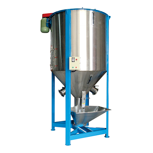 大型立式拌料机具有:自动运转时、过载保护、加料限位报警灯功能,并有占地少、容量大、耗电低、省人工、操作方便、混合决捷均匀等特点。可广泛应用于:塑料粒料、粉碎料、塑料片料、塑料新旧料及添加色母搅拌均化等用途。